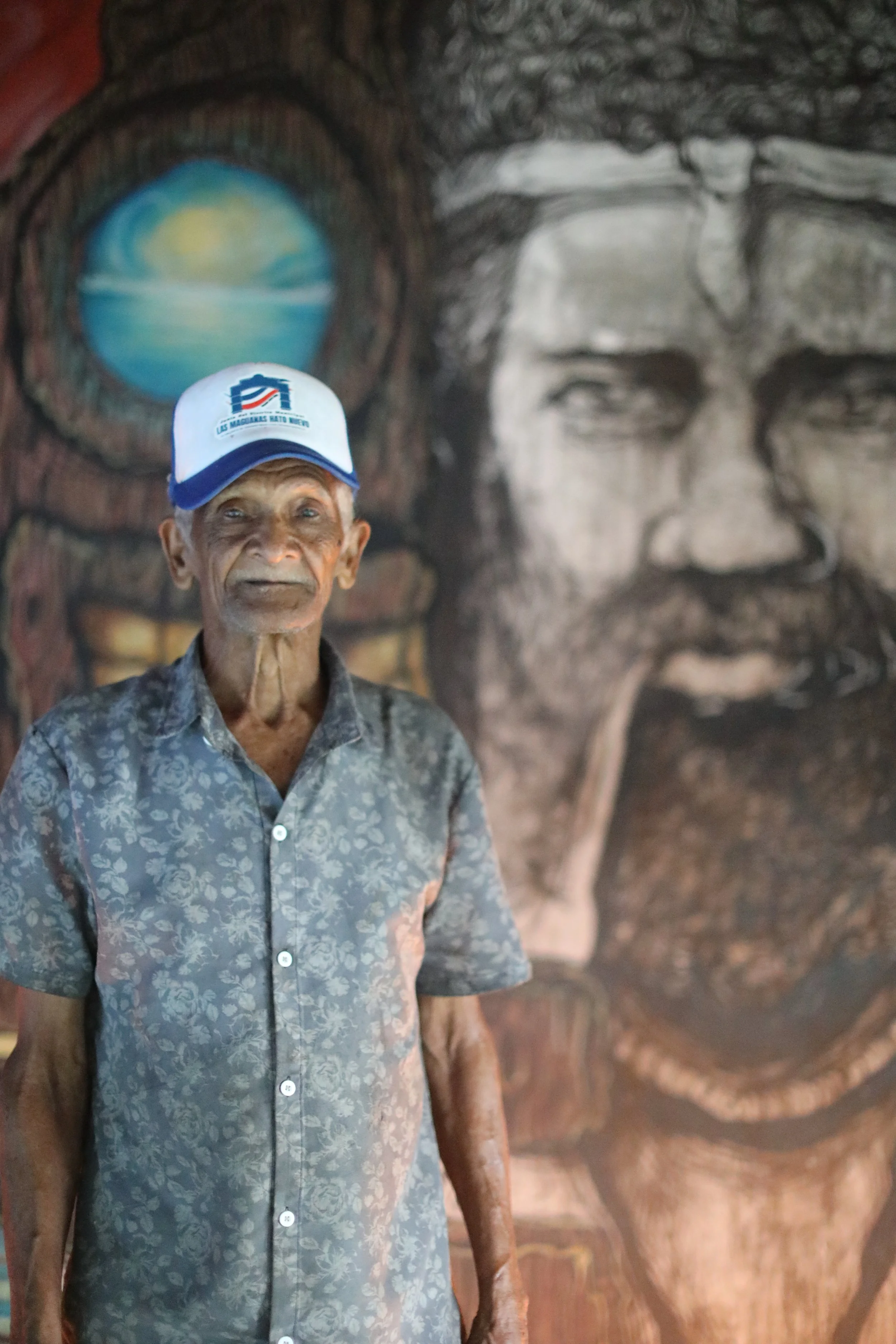 Se nos acerca el guardiana de La Agüita, Andrés Medina Luciano, que ofrece una oración y entona un canto en honor a Liborio. Al invocar su nombre, un viento fuerte atraviesa La Agüita, como si el espíritu mismo de Liborio respondiera al llamado. El cielo ruge con un trueno ensordecedor y nos apresuramos hacia una pequeña estructura ceremonial para refugiarnos bajo su techo. El viento aúlla entre los árboles, quebrando ramas, derribando troncos, como si abriera camino o viniera a entregar un mensaje; el cielo y la tierra uniéndose en un solo rezo.